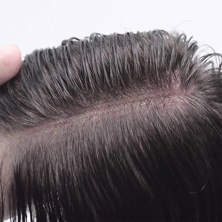 The Q6 nonsurgical Swiss lace hair system has a Swiss lace base strengthened by transparent PU sides and back.